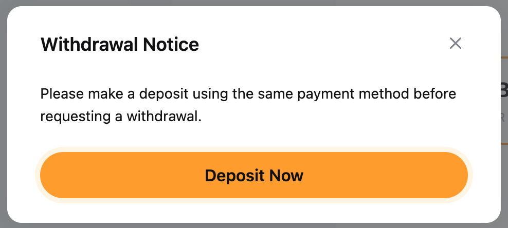 — Для определенных валют и способов оплаты вы можете выводить средства только на счет, который вы уже использовали для пополнения тем же способом и в той же валюте. Если это новый счет, сначала совершите успешное пополнение, прежде чем пытаться вывести средства. Пожалуйста, убедитесь, что вы проверили требования для каждого способа оплаты, прежде чем выводить фиатные средства.