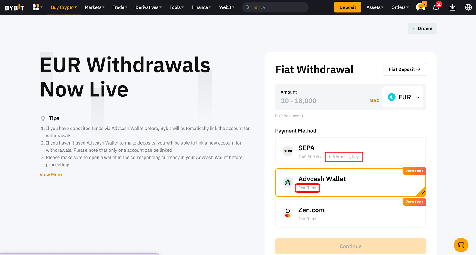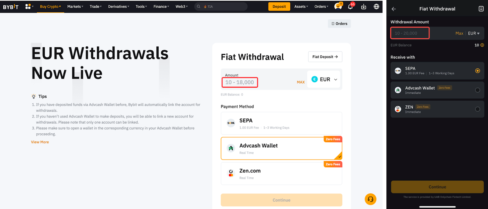 Время обработки может различаться в зависимости от выбранной фиатной валюты и способа оплаты. Вы можете узнать ориентировочное время обработки для каждого фиата, перейдя на страницу вывода фиата и выбрав соответствующую валюту. Пожалуйста, прочтите также советы рядом с окном ордера для получения более подробной информации.