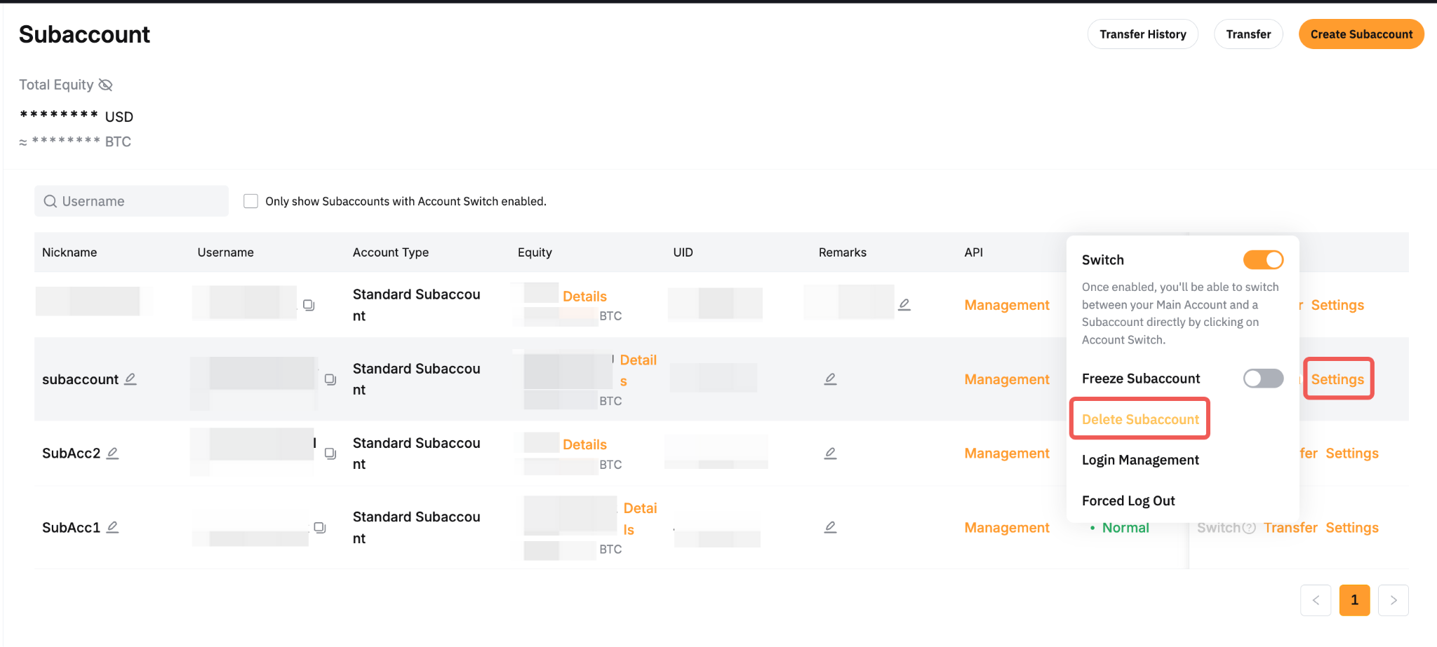 Для этого действия вам нужно будет перейти на страницу Субаккаунт через ваш основной аккаунт. Затем нажмите кнопку Настройки соответствующего стандартного субаккаунта и нажмите на значок Отвязать во всплывающем окне Управление входом в систему. Более подробное руководство можно найти в этой статье.