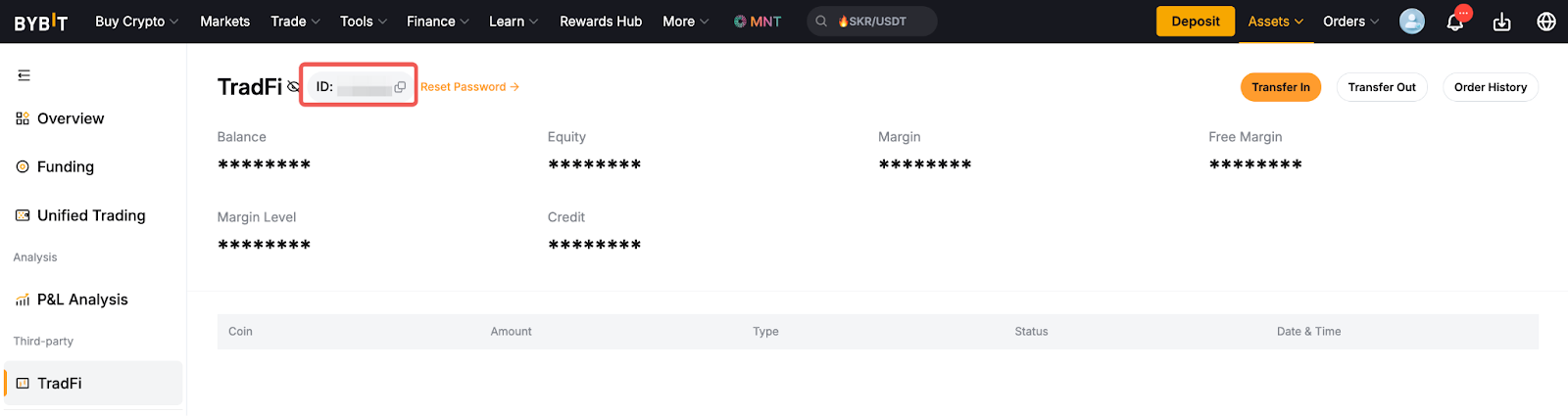 Кроме того, вы можете нажать на страницу активов TradFi, и логин будет отображаться в верхней части страницы.