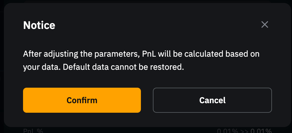 Шаг 3. Всплывающее сообщение уведомит о том, что P&L и P&L (%) будут пересчитаны на основе новых данных. Обновленные P&L и P&L (%) можно проверить в разделе P&L, расположенном рядом с разделом Активы в нижней части страницы торговли. Обратите внимание, что изменения необратимы. Нажмите Подтвердить, чтобы продолжить.