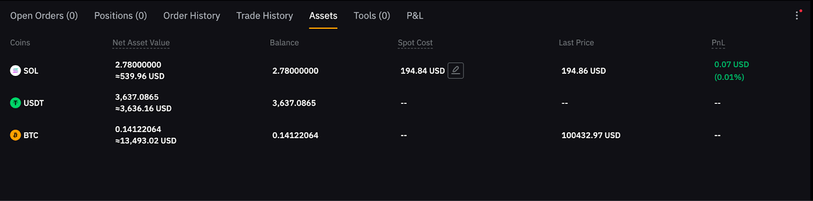 1. Цена покупки конвертируется в USDT для расчета, а спотовая стоимость отображается в USD.