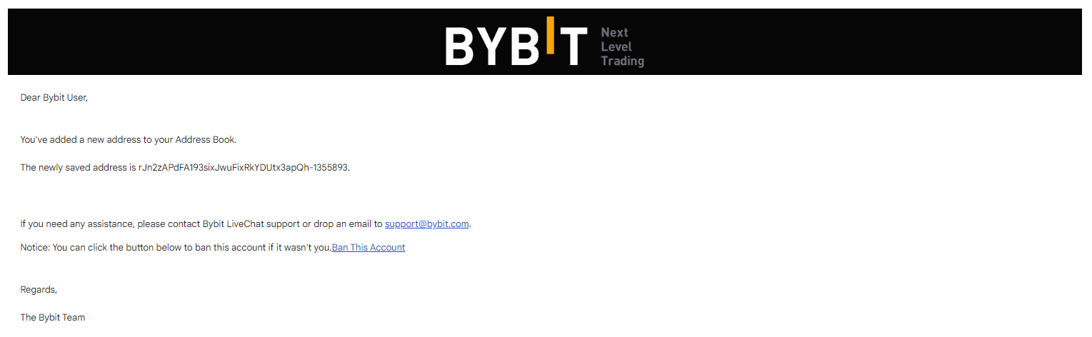 2) Никому не сообщайте данные доступа к аккаунту. Для вывода средств с аккаунта Bybit требуется код подтверждения, отправленный на электронную почту, и Google-аутентификация (2FA). Поэтому обязательно надёжно защищайте привязанную электронную почту.