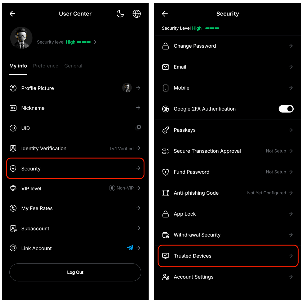 Пароль FIDO, использующий биометрические данные, сохранённые на вашем устройстве, обеспечивает безопасную верификацию на нескольких устройствах. Этот пароль повышает безопасность транзакций, добавляя дополнительный уровень защиты для защиты вашего аккаунта и одновременно обеспечивая более быстрый и безопасный вывод средств. Для получения дополнительной информации ознакомьтесь с этой статьей.