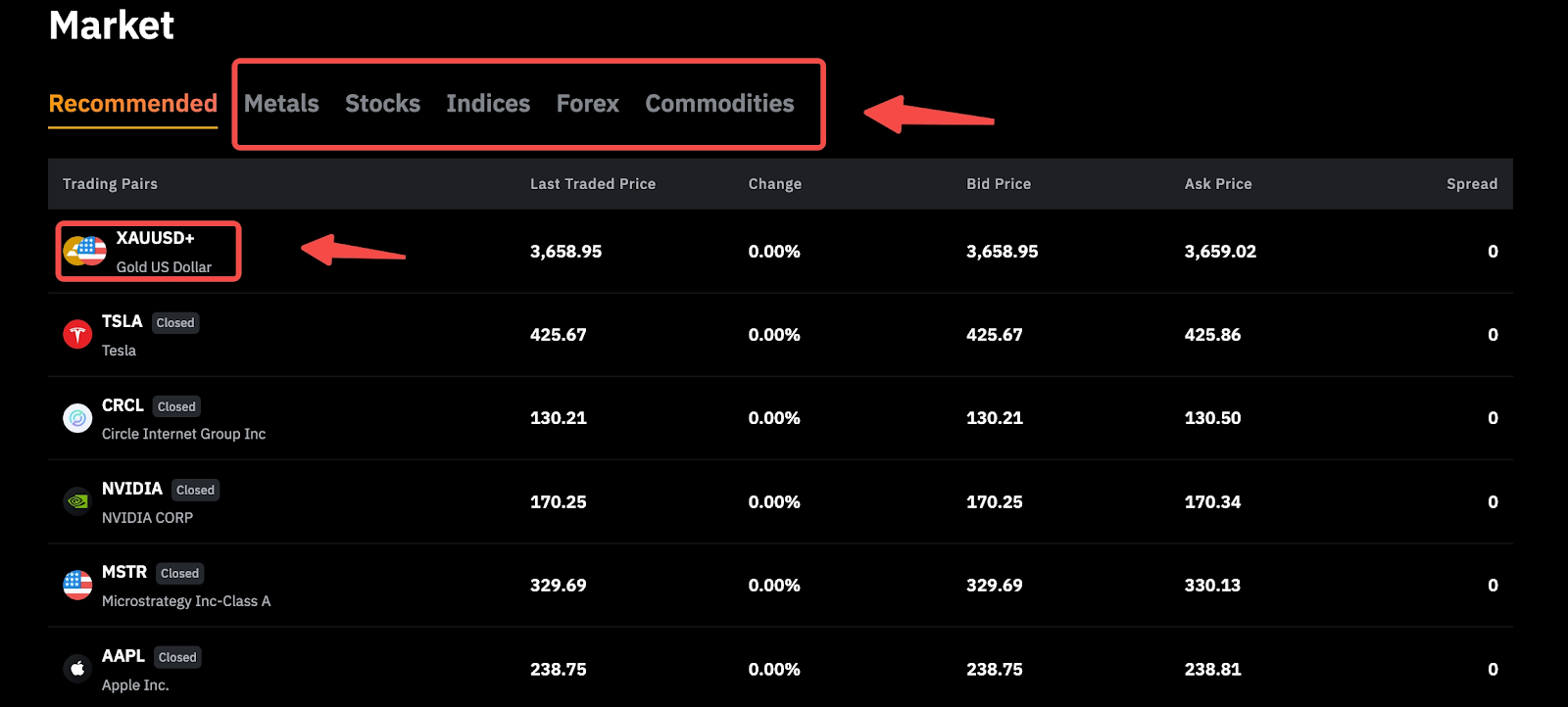 Шаг 3. Выберите предпочтительный торговый символ, чтобы перейти на торговую страницу, и начать торговлю.