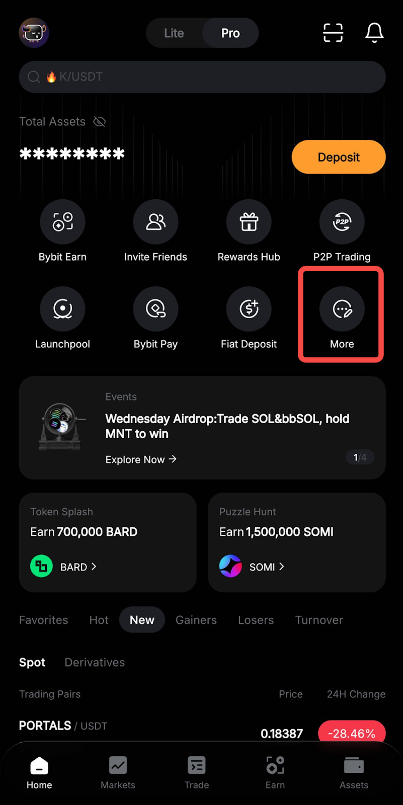 Step 1: From the Bybit homepage, tap on the Scanner icon to open the QR scanner.