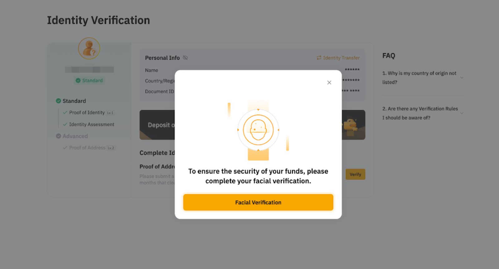 Шаг 3. Чтобы обеспечить безопасность аккаунта и ваших средств, вам будет необходимо пройти определённую проверку текущего аккаунта (например, пройти распознавание лица или ввести код проверки безопасности). Для этого необходимо следовать инструкциям на экране.