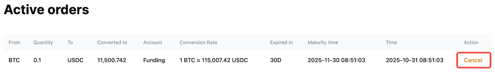 — Лимитные ордеры, размещенные через Конвертацию, действует в течение 30 дней. Активы будут заблокированы до тех пор, пока ордер не будет выполнен или пока не истечет срок действия. Если ордер не будет выполнен в течение 30 дней, он будет автоматически отменен.