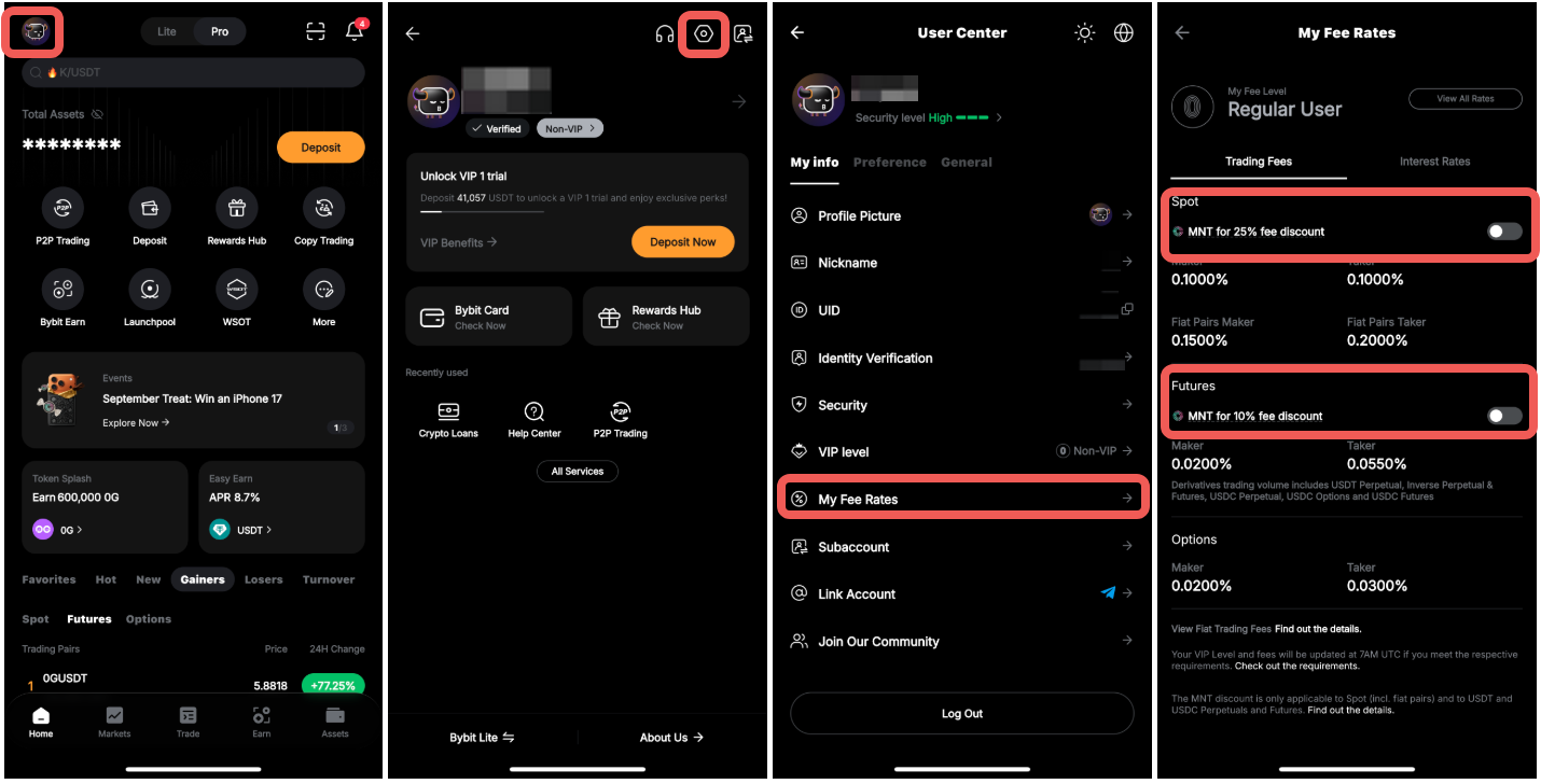 Если вы используете приложение, следуйте приведенным ниже инструкциям, чтобы включить использование MNT для получения скидки.