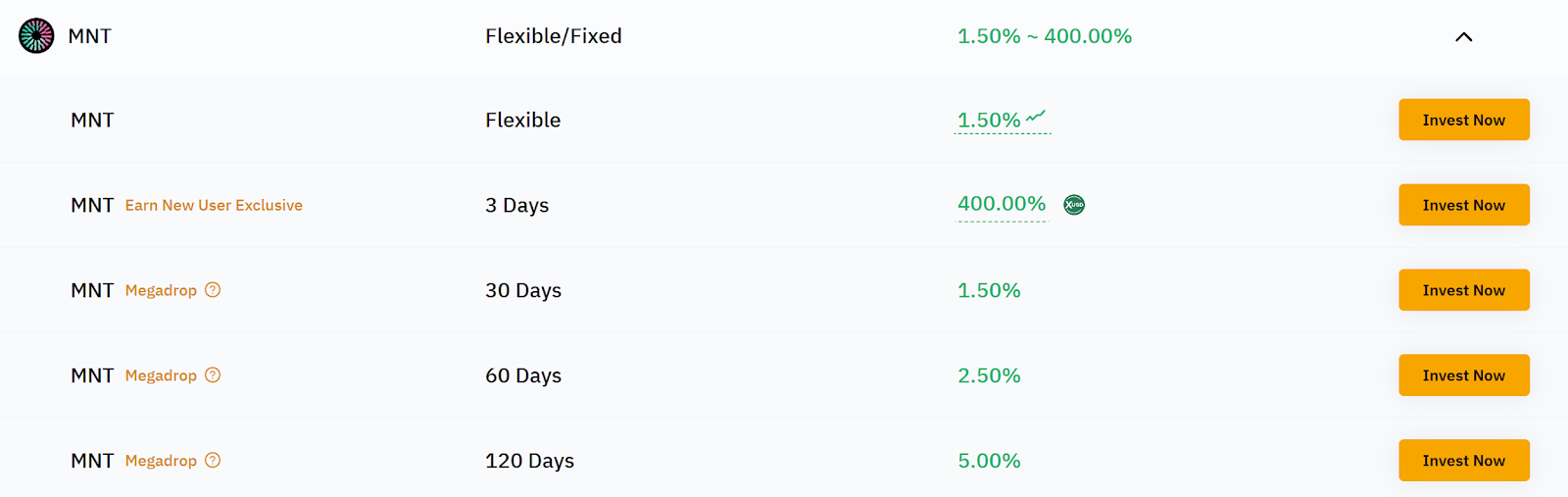 Пригласите MNT принять участие в программах Launchpool, Launchpad, Megadrop и Token Splash для раннего доступа к новым токенам и более высоким уровням распределения.