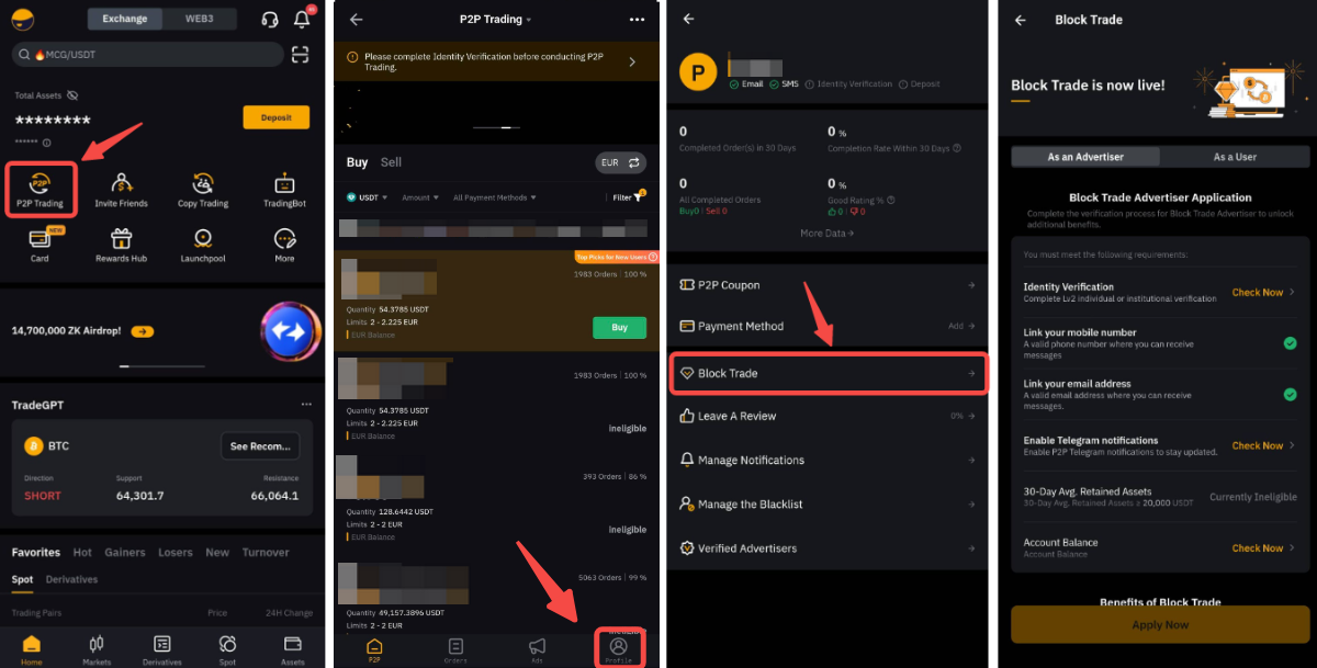 Блок-мейкеры могут размещать более крупные объявления, а также торговать P2P-ордерами от 10 000 USDT до 1 000 000 USDT (для индивидуального KYC) или 2 000 000 USDT (для бизнеса).