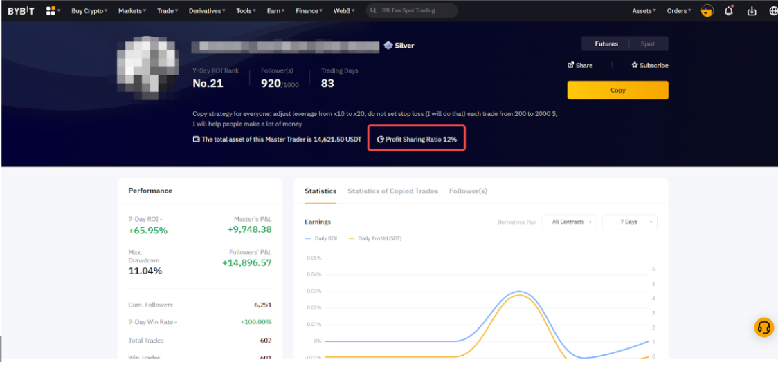 Як майстер-трейдер на Bybit, ви можете отримувати частку від чистого прибутку, що отримує кожен із ваших підписників. І навпаки, як підписник, ви виплачуєте майстер-трейдеру частку від прибутку за своєю позицією у майстер-трейдера.