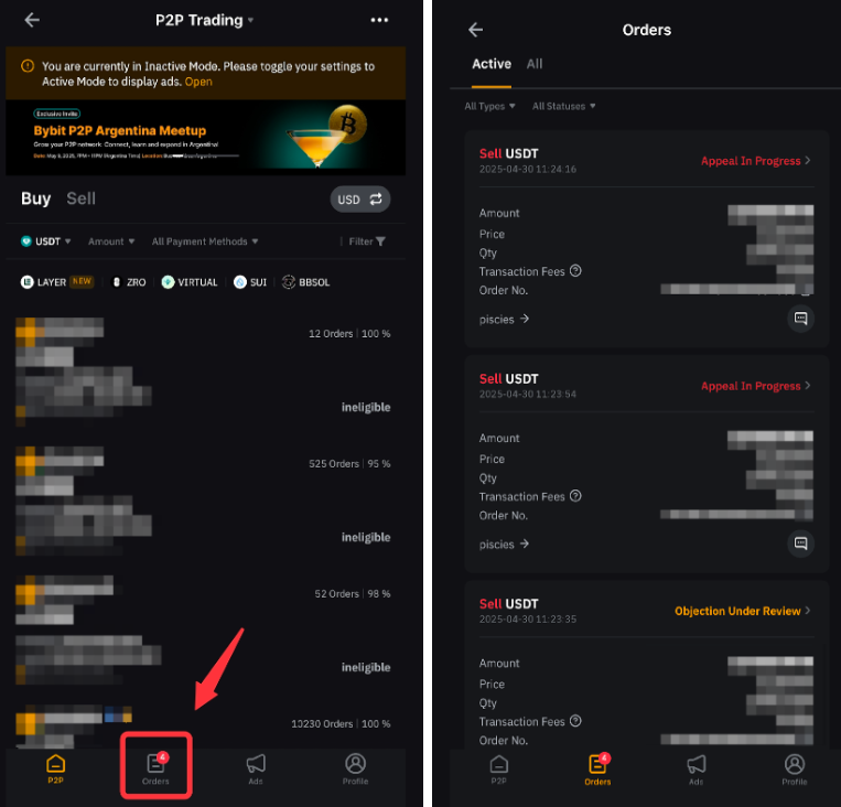 Ви також можете переглянути історію ордерів, перейшовши до Ордерів на сторінці P2P-трейдингу.