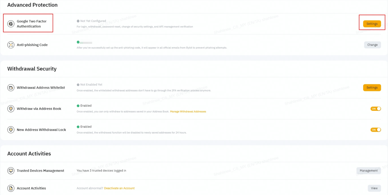 Зв'яжіть свої акаунти з автентифікатором Google (2FA) якнайшвидше. Найкращий час для цього — одразу після першого входу до вашого акаунта Bybit. Ми також рекомендуємо вам активувати автентифікатор Google (2FA) або його еквівалент для вашої поштової скриньки.