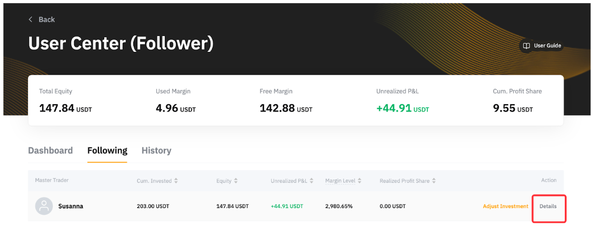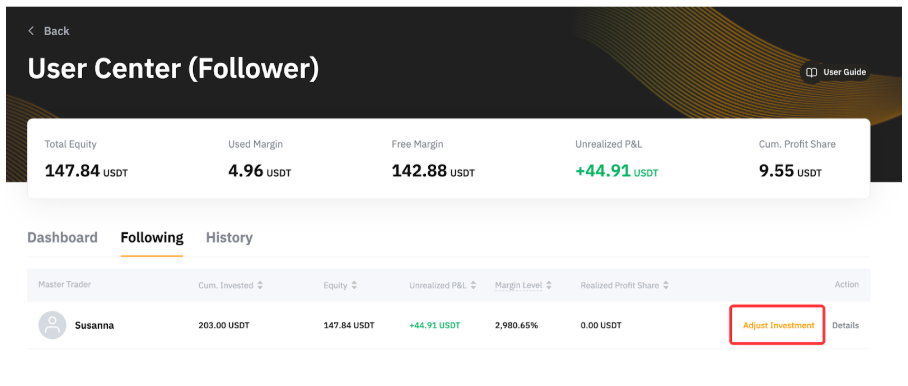 Інвестиція Мінімальна та максимальна суми інвестицій для підписників становлять 100 USDx та 1 000 000 USDx відповідно. Зверніть увагу, що майстер-трейдер може встановити вищу мінімальну суму інвестицій, необхідну для копіювання, й ви зможете побачити цю суму у стовпці.