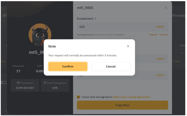 Ось покроковий посібник із копіювання вашої першої угоди TradFi на Bybit.