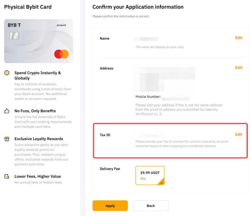 第 3 步:編輯您的收貨地址。請注意,送貨地址應與提交虛擬 Bybit Card 地址驗證的地址相同。